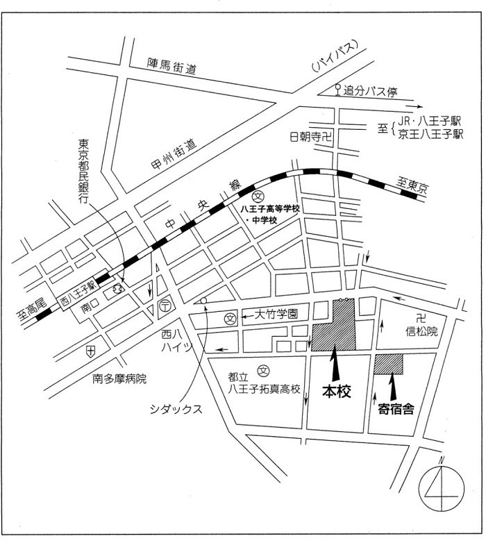 - 【バス】 西八王子駅南口行き(7番のりばより) 「八王子盲学校」下車すぐ