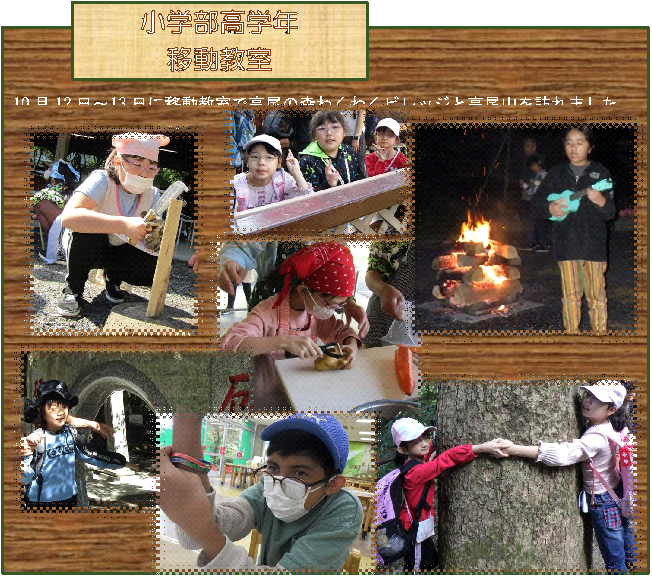 先日、高学年は移動教室で高尾方面へ行ってきました。子供たちの元気に応えるかのように二日間とも快晴でした。豊かな自然の中で、飯盒炊飯やネイチャーゲーム、ハイキング などを楽しみました