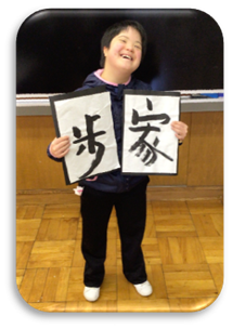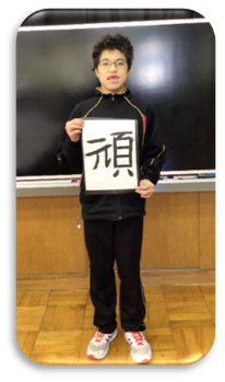 高等部普通科2組の生徒が生活単元学習の授業で書き初めをしました。冬休みの間に「どの漢字にしよう」「今年の抱負は何にしよう」など、それぞれが考えた抱負や思いを一つの漢字に込めて書きました。