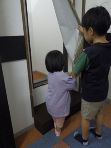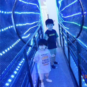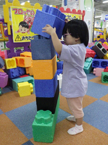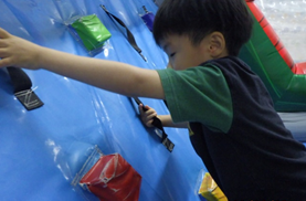 着いたら、まずみんなで「光の迷宮」「からくり忍者」の中を探検。不思議な光の通路や、忍者屋敷のようなからくりのある部屋を通り抜けて楽しみました。その後、自分の好きなエリアで遊びました。ボールプールに飛び込んでボールをかごに入れたり、エア遊具をよじ登って滑り降りたり、体をたくさん使って遊びました。お腹が空いたらお弁当タイムです。みんなでおいしく食べた後は、スノータウンで雪の上を歩いたりバケツに雪を入れたりして、ひんやりした感触を味わいました。