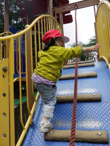 公園では、子供たちは遊具遊びを元気いっぱい楽しみました。難しそうな遊具にも挑戦して、できたときの嬉しそうな笑顔が輝いていました。