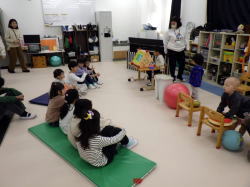 冬の活動は、絵本「くまさんおでかけ」のお話に出てくる音を子供たちが探して鳴らす音楽遊びでした。2月13日(木)に「音のお話会」として、お客さんの前で朗読に合わせて子供たちが音を鳴らして発表しました。