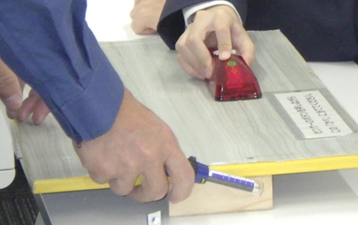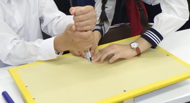 『1.2cmの紐は点字ブロックと高さが近いね』