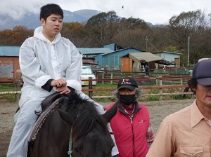 2日目は朝から滝沢牧場へ。馬小屋の掃除や、ヤギ・ヒツジ・ブタへのえさやり、ポニーとの触れ合い、乗馬体験など、生徒それぞれの距離感で動物たちと親しみました。また、前日に引き続き、牧場のスタッフの方にもお仕事についてインタビューをさせていただきました。「子供の頃から馬が大好きで仕方なくて、別の仕事も経て、一念発起してこの仕事をしている」と、熱いお話をしていただき、好きなことを仕事にすることへの決意や覚悟のようなものを感じました。進路を考える上で、一番大切にしたいことは何なのか、優先順位を考え直すきっかけを与えていただきました。