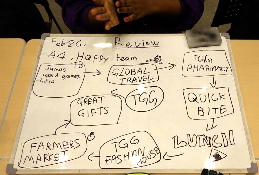 生徒はオールイングリッシュの環境で、トラベルシーンというプログラムを体験しました。