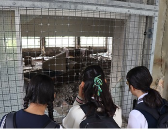 次に「門脇小学校」に行きました。実際に津波被害を受け、震災遺構として残されている場所です。