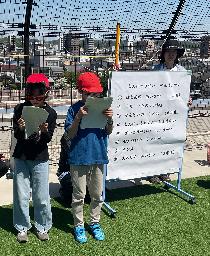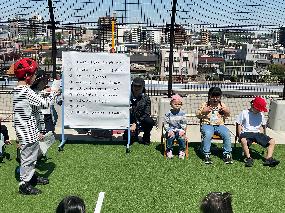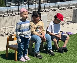 その後は、みんなで「たのしいね」の歌を歌い、全員で自己紹介をして、好きな食べ物などを発表しました。